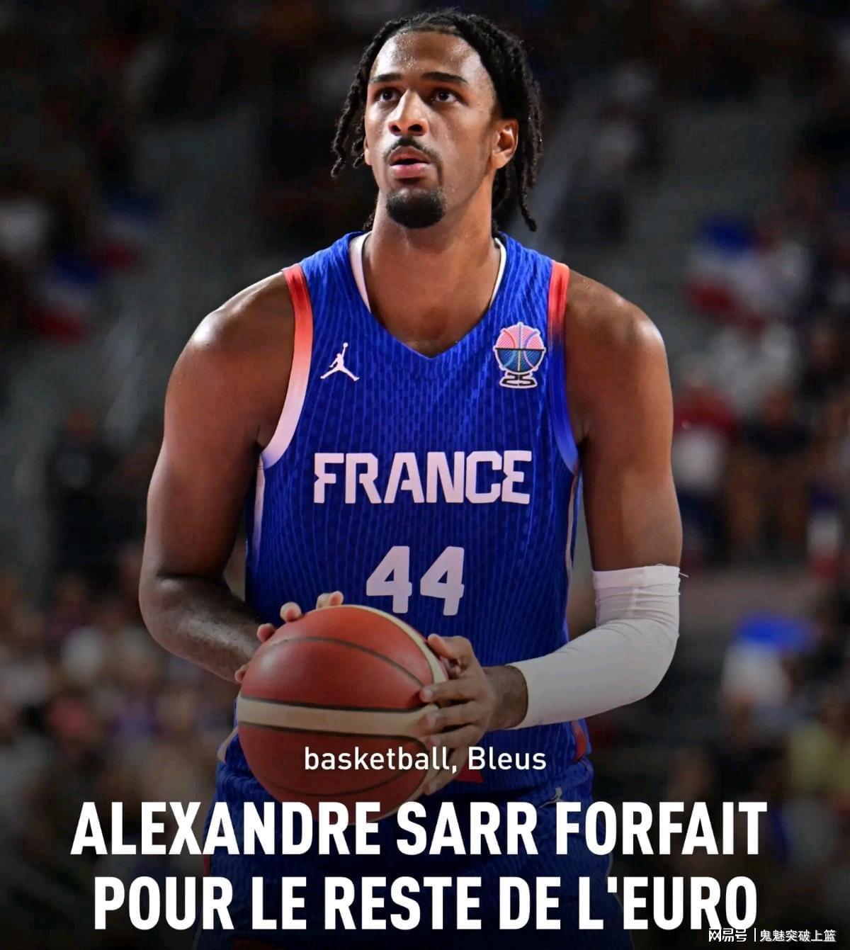 殊不知,欧锦赛赛场的伤病是一茬接一茬!这不,另一大夺冠大热门法国男篮如今也遭遇了重创。据法国体育日报《队报》报道,中锋亚历山大-萨尔因小腿肌肉拉伤,他将缺席本届欧锦赛剩余所有比赛。