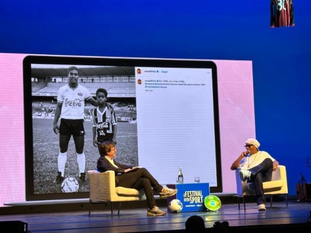 这倒是天作之合。小罗出场,怎能少了音乐?组织者特意安排了一组波萨诺瓦乐队,在访谈的间隙进行演奏。你并不是每天都能见到罗纳尔迪尼奥,特伦托人民的热情可想而知,现场入口处排起长队,而主办方考虑到采访很可能要用葡语进行,特意准备了大量的同声传译耳机。小罗在热烈的掌声和歌声中出场,人们齐声唱着“迪尼奥——迪尼奥——”,令大家没想到的是,尽管已经离开意大利超过十年,小罗并没有完全忘记意大利语,他选择用现场观众最熟悉的语言接受采访。