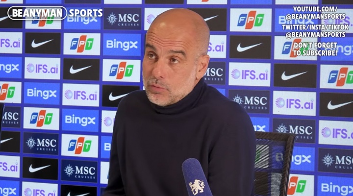 英超第32轮,曼城3-0击败切尔西。赛后,曼城主帅瓜迪奥拉出席了新闻发布会,回答了记者的提问,并谈到比赛中的调整、谢尔基、下轮联赛和阿森纳之间的“天王山之战”等等话题。