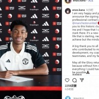 比伊克社媒:很自豪与曼联签下首份职业合同,希望在这里留下印记