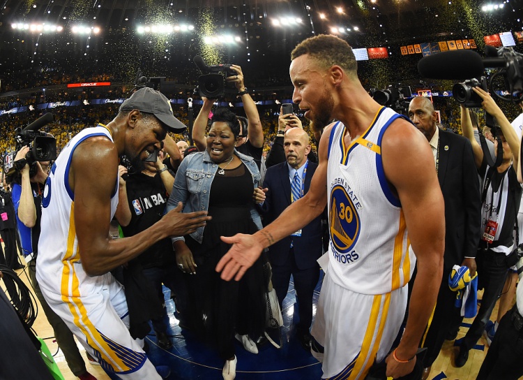 杜兰特加入这支球队时之所以会引来众怒,原因就在于此。说实话,这不公平。勇士几乎横扫了整个季后赛,取得了15连胜,并以创纪录的+13.5的净胜分结束征程,同时让一支由勒布朗-詹姆斯、凯里-欧文和凯文-乐福(这支球队最强的三名球员可以说远胜于迈克尔-乔丹在总决赛中面对过的任何对手)领衔的球队也显得相形见绌。再次强调,这不仅仅是本世纪最伟大的球队。这是有史以来最伟大的球队。