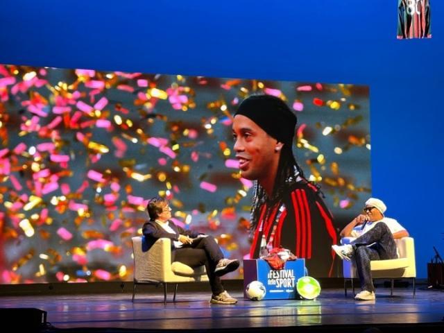 这倒是天作之合。小罗出场,怎能少了音乐?组织者特意安排了一组波萨诺瓦乐队,在访谈的间隙进行演奏。你并不是每天都能见到罗纳尔迪尼奥,特伦托人民的热情可想而知,现场入口处排起长队,而主办方考虑到采访很可能要用葡语进行,特意准备了大量的同声传译耳机。小罗在热烈的掌声和歌声中出场,人们齐声唱着“迪尼奥——迪尼奥——”,令大家没想到的是,尽管已经离开意大利超过十年,小罗并没有完全忘记意大利语,他选择用现场观众最熟悉的语言接受采访。