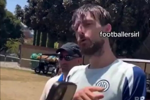 这位国米后卫显然被激怒,立刻现身与该球迷对质,在一名工作人员协助翻译下,他用严厉的语气回怼道:“我是个严肃的人。小伙子,我不喜欢被人取笑。我会从那里冲出去,因为我是个疯子,真会揍死你。”