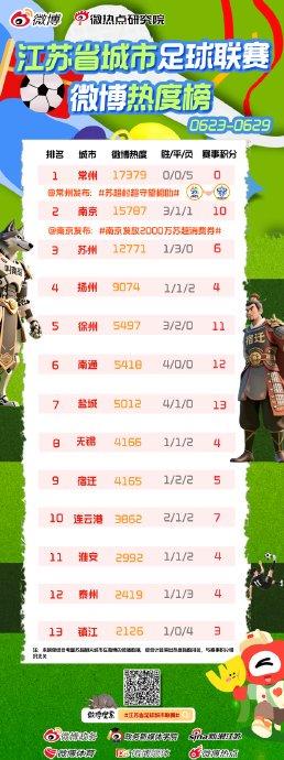 【#苏超热度榜藏着城市文旅大招#】#苏超城市微博热度榜发布# 赛场内激烈角逐,赛场外城市“整活”火力全开,第三期苏超城市微博热度榜新鲜出炉!